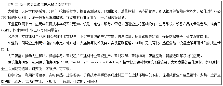 建材工业(含无机非金属材料)是建筑工程和基础设施必不可少的支撑,是国民经济和社会发展的基础性行业,是战略性新兴产业和国防军工发展的重要保障,是环境治理和生态文明建设不可缺少的重要一环。为促进建材工业与新一代信息技术在更广范围、更深程度、更高水平上实现融合发展,促进建材工业转方式、调结构、增动力,加快迈向高质量发展,制定本计划。