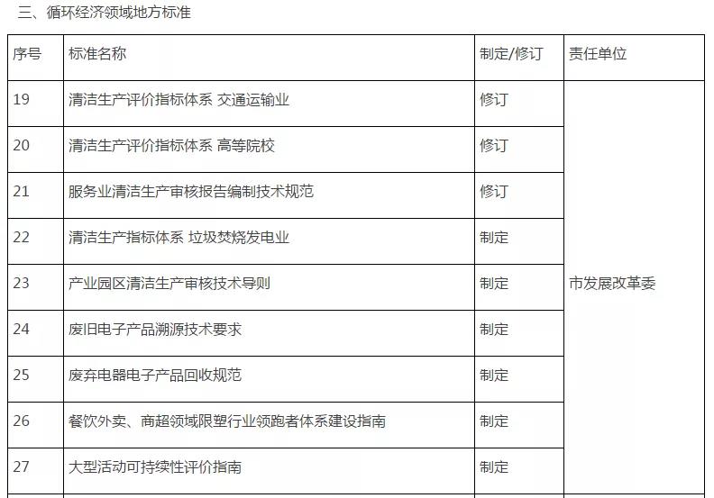 (三)为进一步促进本市资源的循环高效利用,加快推进塑料污染治理、粮食节约减损等工作,开展《废弃电器电子产品回收规范》《餐饮外卖、商超领域限塑行业领跑者体系建设指南》等地方标准制修订工作,以及《可降解塑料制品使用标识规范》等团体标准制定工作。