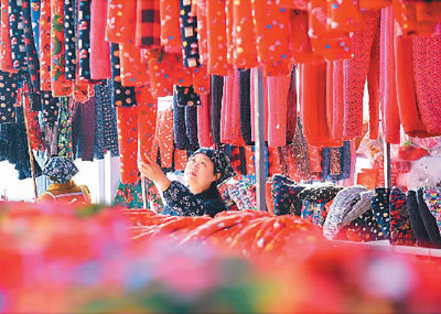 冬日里,山东省淄博市沂源县的手工小棉袄迎来加工销售的旺季。近年来,沂源县通过传承和发展手工小棉袄这一传统手工艺,带动当地农户增收致富。目前,当地的手工小棉袄年加工量达到3万余件,俏销各地市场。图为11月22日,在沂源县东里镇一家布衣坊,工人在整理加工的产品。