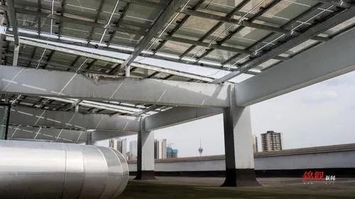 在大楼管理运营方的带领下,记者首先来到了楼顶。推开天台房门,忽然被一阵明亮的光线晃得直眨眼睛。