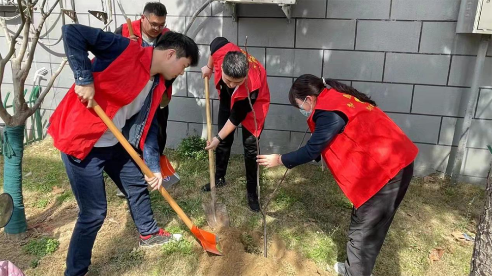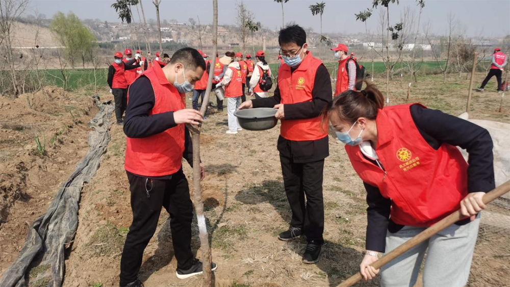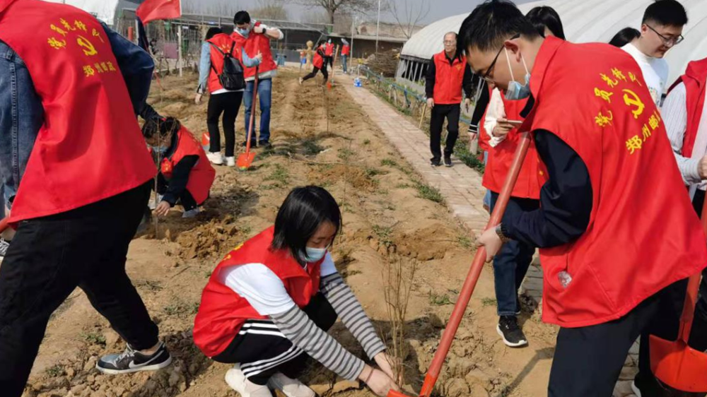 许昌市分公司组织机关支部党员开展植树活动,经过1个多小时的辛勤劳动,20多棵树苗昂然挺立、错落有致,在和煦的春风中待吐新绿。