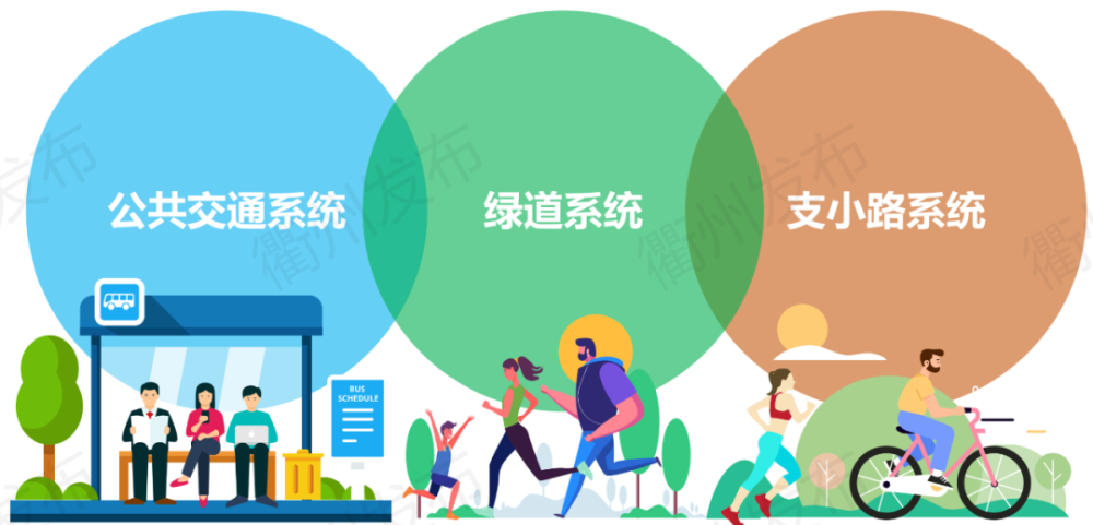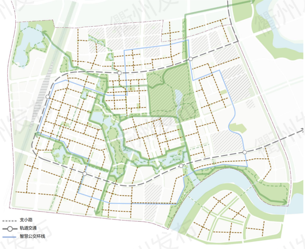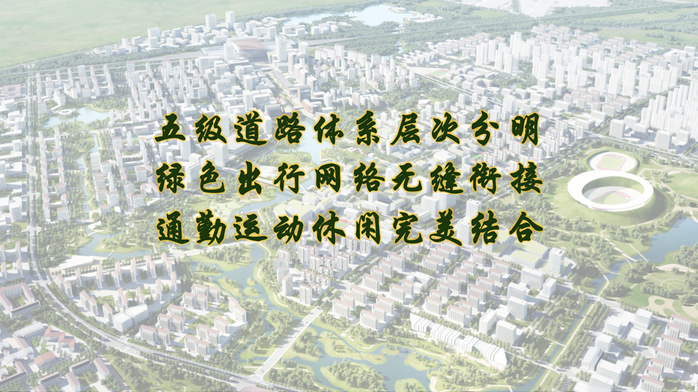 公共交通系统+绿道系统+支小路系统三个层级共同组成高铁新城绿色出行系统。