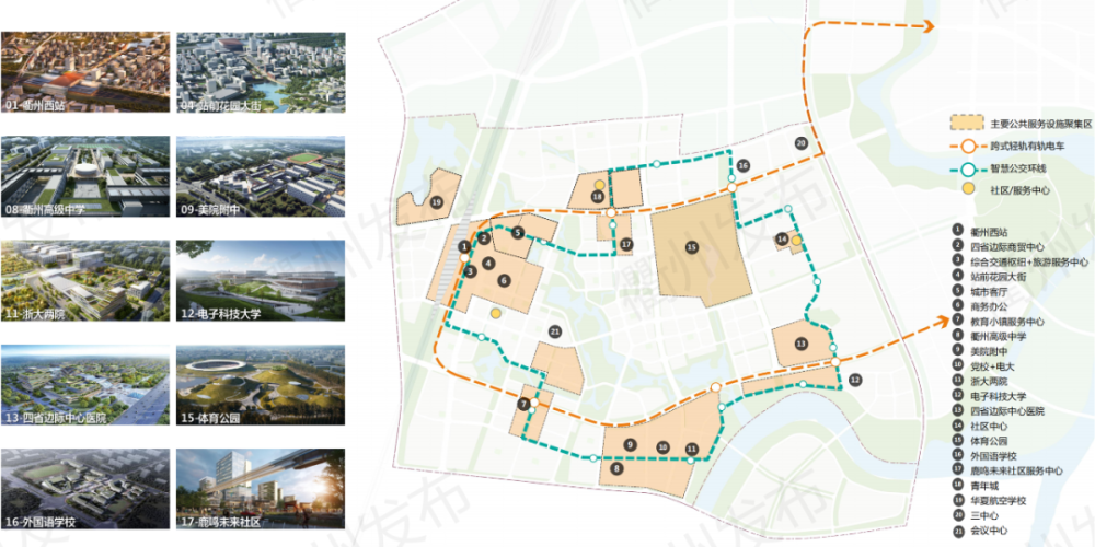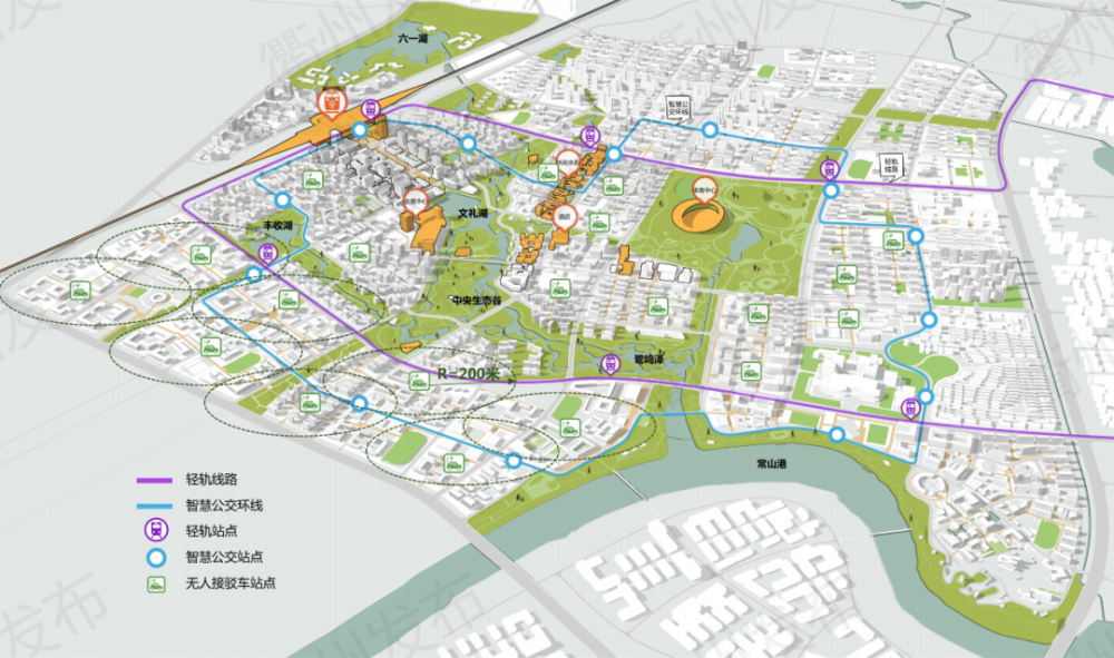 跨式轻轨、智慧公交环等公共服务设施围绕高铁新城各个重要场所。