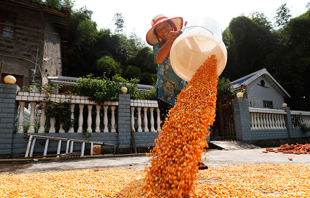 重庆梁平农民晾晒玉米 (来源:新华网)