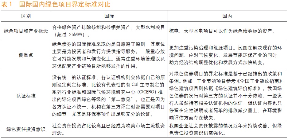 在国内,由于债券市场的监管分工,目前发行规模最大的三类绿色债券分别为绿色金融债、绿色公司债、绿色企业债。2015年12月,人民银行发布《关于在银行间债券市场发行绿色金融债券有关事宜公告》,并配套出台《绿色债券支持项目目录》。同年,国家发展改革委发布《绿色债券发行指引》。2017年3月,证监会发布《关于支持绿色债券发展的指导意见》。2020年7月,人民银行、国家发展改革委和证监会印发《绿色债券支持项目目录(2020年版)》(征求意见稿),明确了绿色债券定义,细化了绿色项目范畴和类型,建立了绿色项目分类标准体系。总体看,国内标准与国际标准在倡导绿色发展、可持续发展方面遵循的宗旨和原则基本一致,但在绿色债券界定侧重和评估认证上存在一定差别。