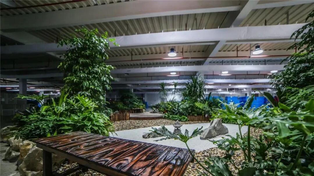 在这个车间里,竟还有一个小公园,工人们工作累了,可以坐下来休息休息,虽然面积不大,但这在海宁的车间里是前所未有的。