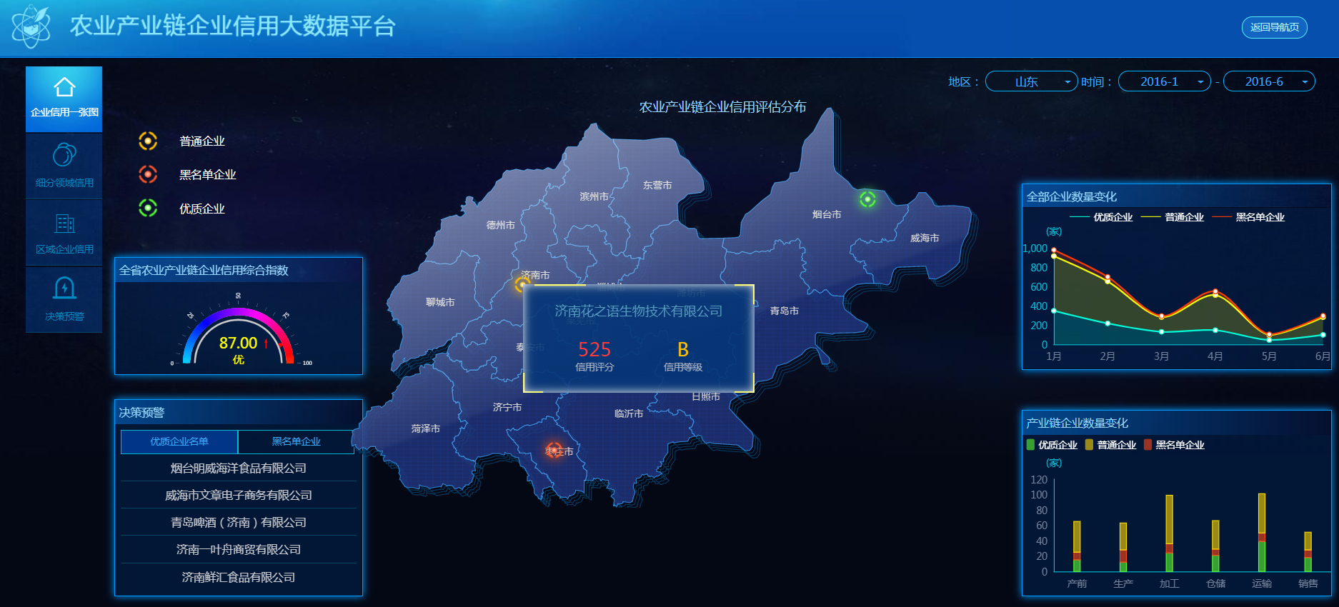 该平台一方面为政府提供农资和农产品生产经营主体信用档案及信用监管的服务,另一方面为金融机构和涉农企业提供数据信用贷款等金融服务,推动农业企业信用建设步入大数据时代。