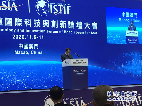 11月10日,博鳌亚洲论坛国际科技与创新论坛大会在澳门举办。科技部副部长黄卫出席开幕式并致辞。