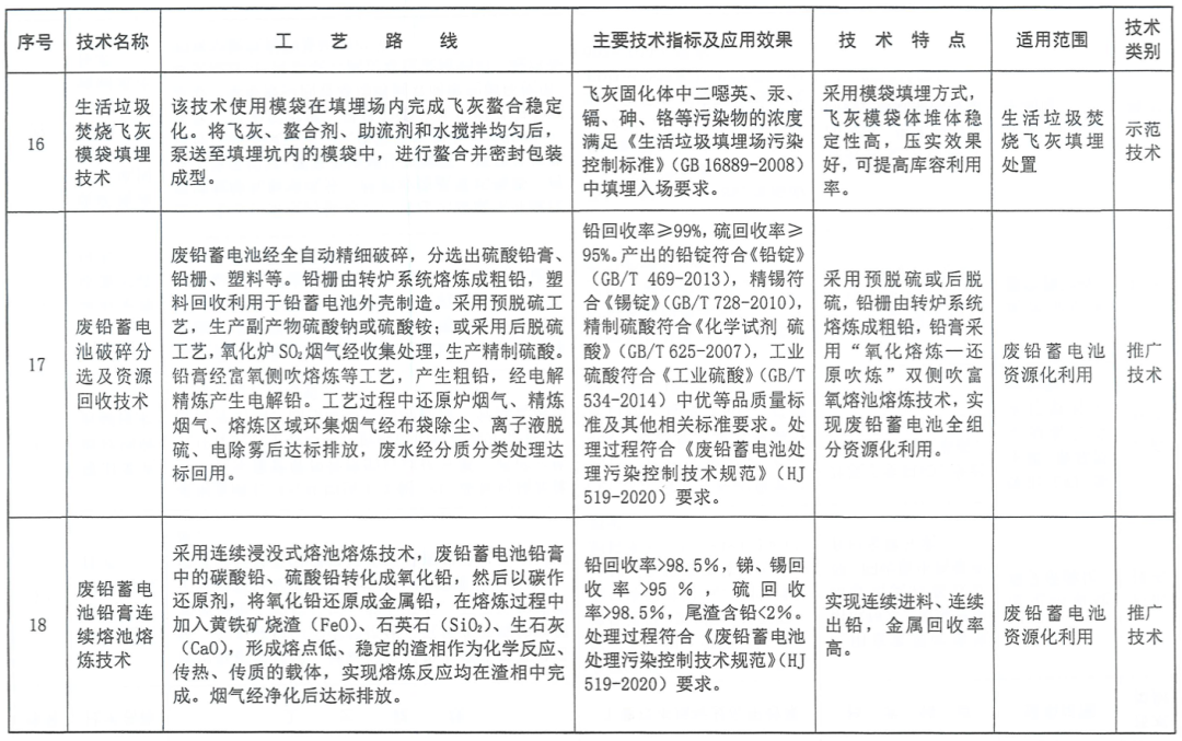 2020年《国家先进污染防治技术目录(固体废物和土壤污染防治领域)》