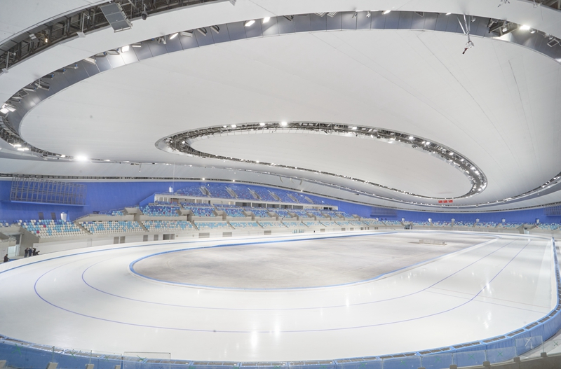 国家速滑馆的全冰面设计则充分考虑了赛后利用,采用分模块控制单元将冰面划分为若干区域,根据不同项目分区域、分标准进行制冰,冬奥会后可以接待超过2000市民同时开展冰球、速度滑冰、花样滑冰、冰壶等所有冰上运动。