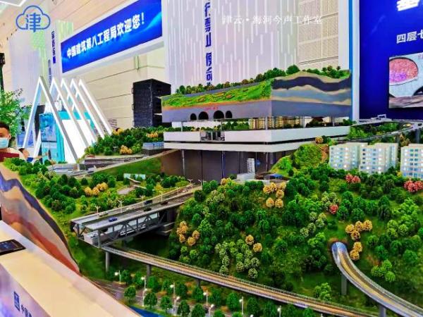 中建八局展区内绿色建筑模型引人注目