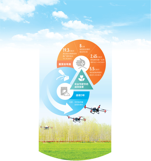 绿色发展理念引导,一系列节肥节药模式遍地开花。截至去年底,全国测土配方施肥技术推广面积超过19.3亿亩次,技术覆盖率达到89.3%,绿色防控面积超过8亿亩。全国缓释肥、水溶肥等新型肥料推广应用面积达到2.45亿亩次,有机肥施用面积超过5.5亿亩次。