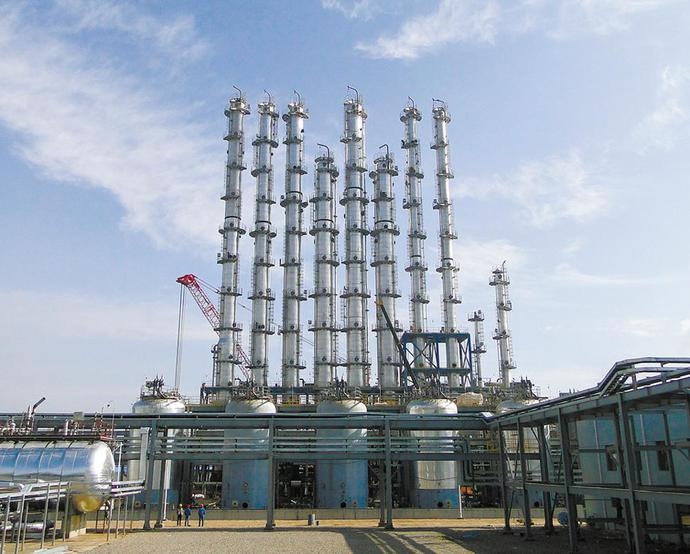 亚洲硅业(青海)股份有限公司热耦合精馏塔。记者 宋翠茹 摄