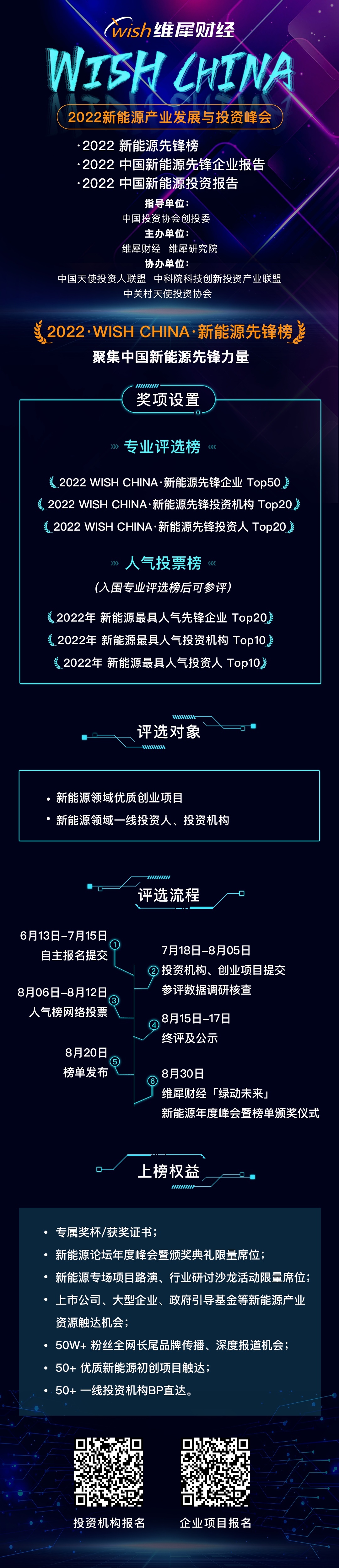 为此,维犀财经旗下「投资人说」、「科创最前线」联合启动新能源专题,挖掘新能源赛道中的先锋项目及投资人,并评选出三大专业榜单,在2022 WISH CHINA 新能源产业发展与投资峰会中,为新能源产业价值创造者、行业推动者加冕。
