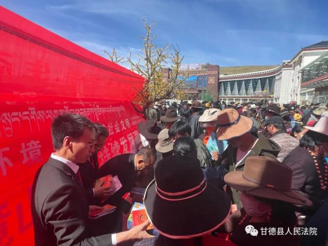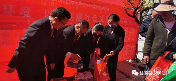 2021年6月5日是第50个世界环境日,也是《环境保护法》规定的中国环境日。为深入贯彻落实习近平生态文明思想,牢固树立尊重自然、顺应自然、保护自然的理念,6月5日,甘德法院组织干警在吾勤广场开展以“以法保护自然环境 以德创建社会文明”为主题的世界环境日宣传活动。