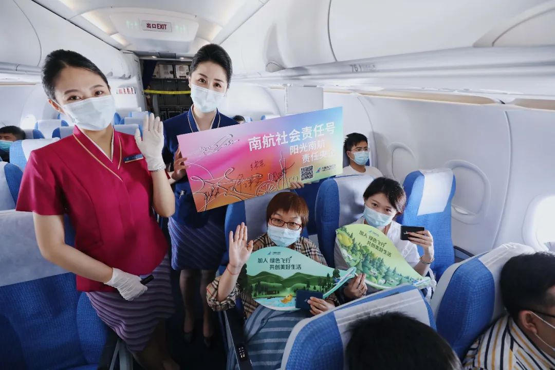 4月22日,是世界地球日,也是南航第4届社会责任日,南航在广州飞往北京大兴的CZ3121航班上举办“加入‘绿色飞行’共创美好生活”主题活动,在发布2020年社会责任报告的同时,正式宣布升级“绿色飞行”责任品牌,在业内率先推出“绿色全旅程”服务,同时倡议旅客低碳简约出行。这是深入贯彻落实新发展理念的率先行动,是践行国家“碳达峰”“碳中和”目标任务的创新之举。