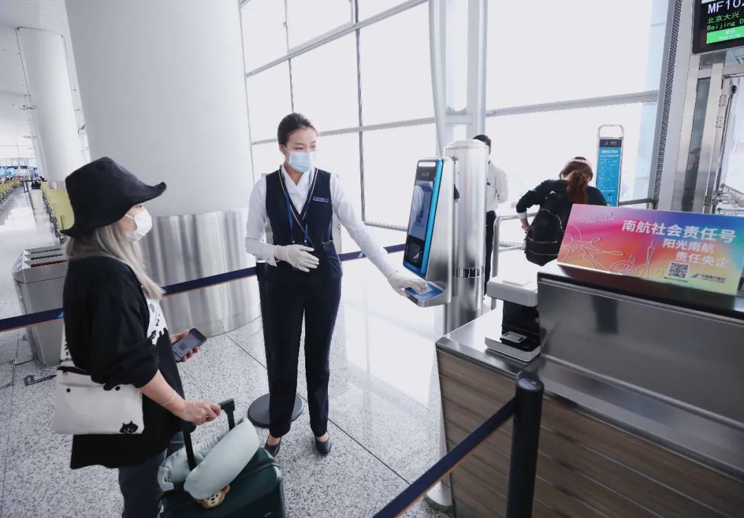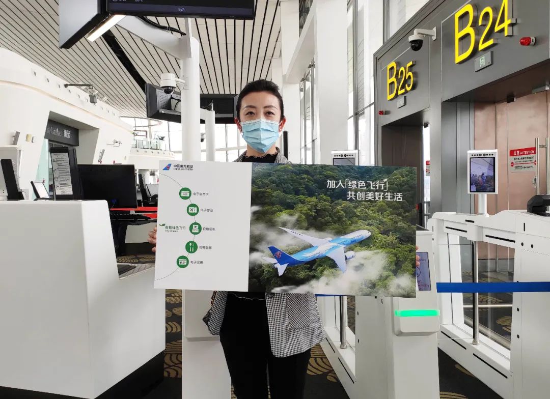 4月22日当天,在广州白云机场、北京大兴机场以及CZ3121主题航班上,旅客们通过现场工作人员的手举牌、合影框,以及体验自助行李托运、电子登机牌等智能化设施,感受到南航“绿色全旅程”服务,纷纷签名支持和表示愿意加入“绿色飞行”活动。