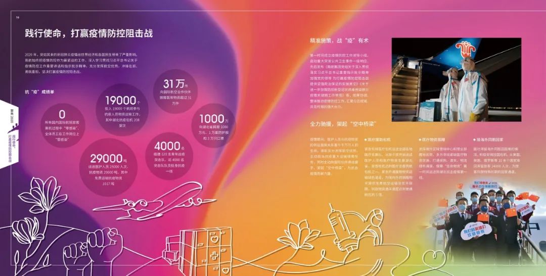 《2020年社会责任报告》以“践行使命,共赢未来”为主题,详细披露了2020年南航全面落实中央和上级决策部署,坚决扛起央企的责任担当,打赢疫情防控阻击战、经营应对主动战和高质量发展攻坚战三场大战的情况。
