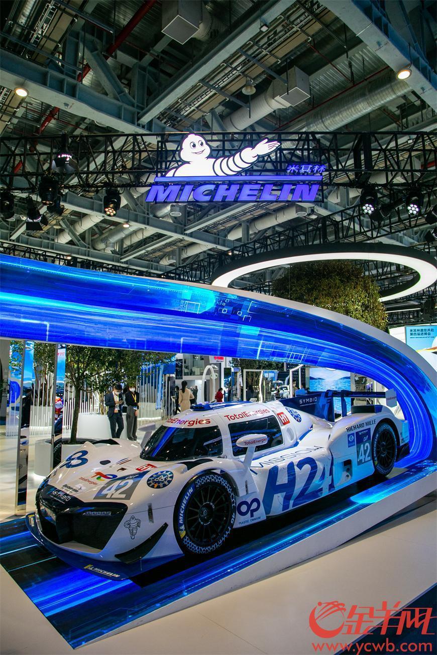 世界首台氢能源驱动赛车。这辆赛车搭载包含 46% 可持续材料的米其林新款赛事轮胎