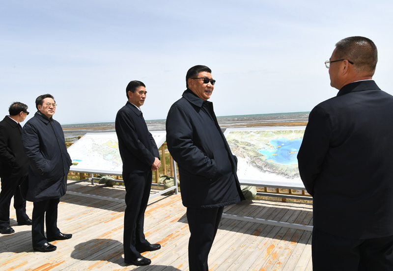 6月7日至9日,中共中央总书记、国家主席、中央军委主席习近平在青海考察。这是8日下午,习近平在海北藏族自治州刚察县青海湖仙女湾考察。新华社记者 李学仁 摄