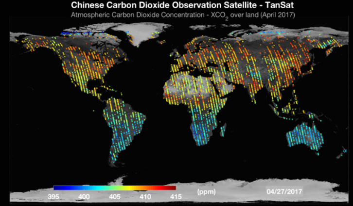 ▲我国碳卫星TanSat的二氧化碳观测数据