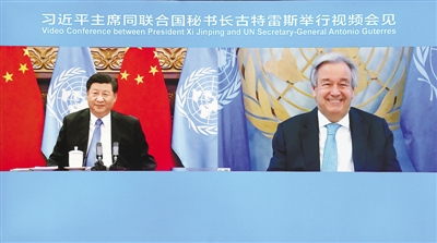 9月23日晚,国家主席习近平在北京以视频方式会见联合国秘书长古特雷斯。 |