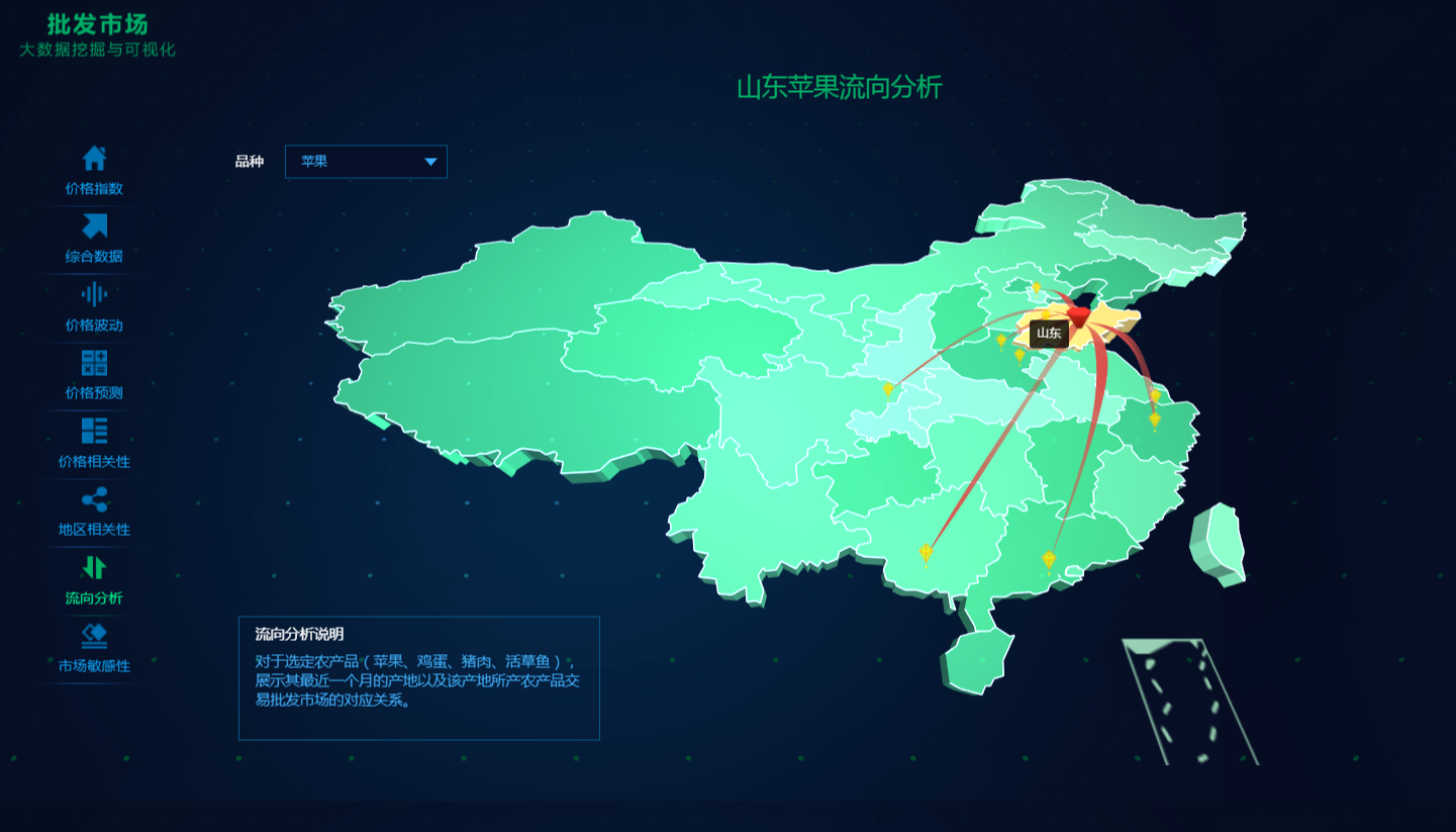 该平台从全局的角度,深入挖掘农产品价格大数据价值,利用数学建模、可视化等技术,构建价格波动、传导、预测、预警等系列模型,辅助政府部门进行价格监测预警和宏观调控,及时稳定农产品市场,有效抑制农产品价格“过山车”现象的频发,指导农业生产经营者进行生产销售决策,降低经营风险,提高销售收入。