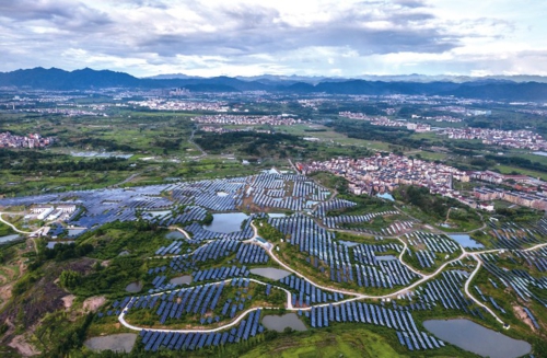 浙江东阳:积极推进光伏项目,让清洁能源进入千家万户 近年来,浙江省东阳市积极推进光伏发电项目,包括农光互补发电项目、工业企业屋顶光伏发电项目等。据介绍,东阳市规模化的光伏项目年均发电量4000万千瓦时,每年减少二氧化碳排放3万吨,通过电网将清洁能源送入千家万户。 图为从空中俯瞰位于东阳市六石街道夏溪潭村附近的50兆瓦农光互补光伏发电项目。新华社